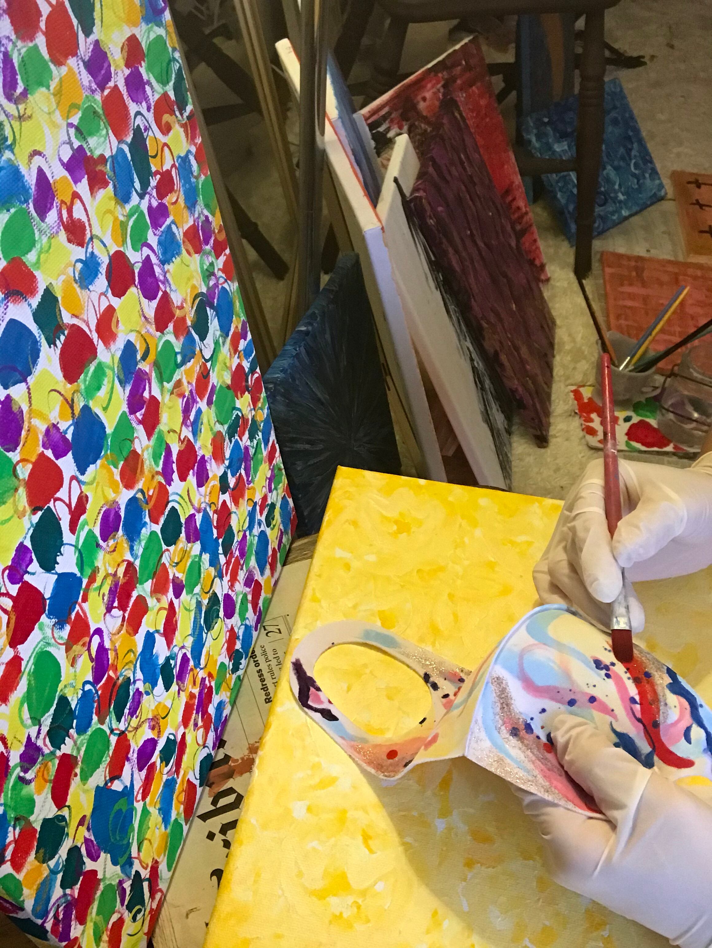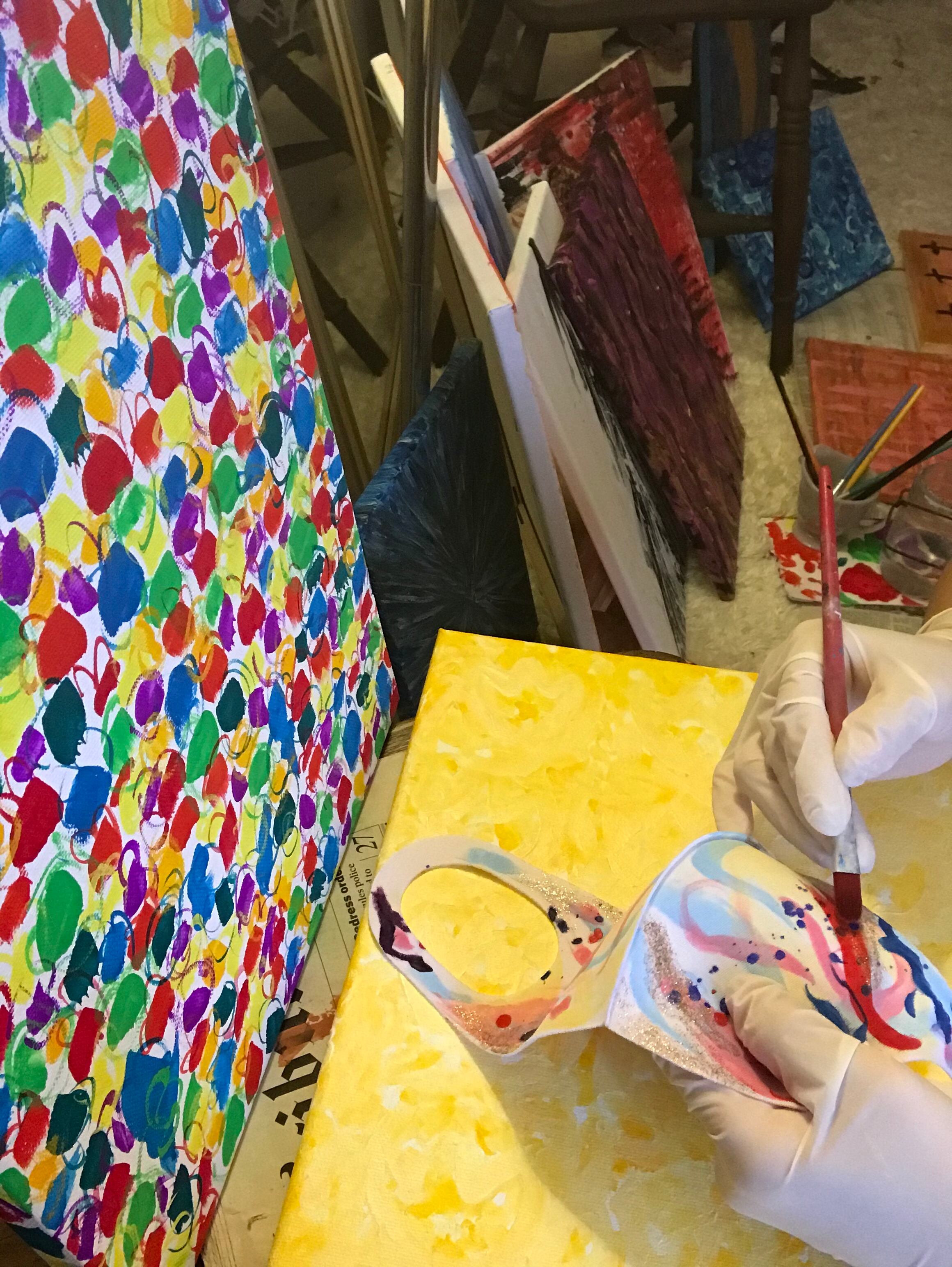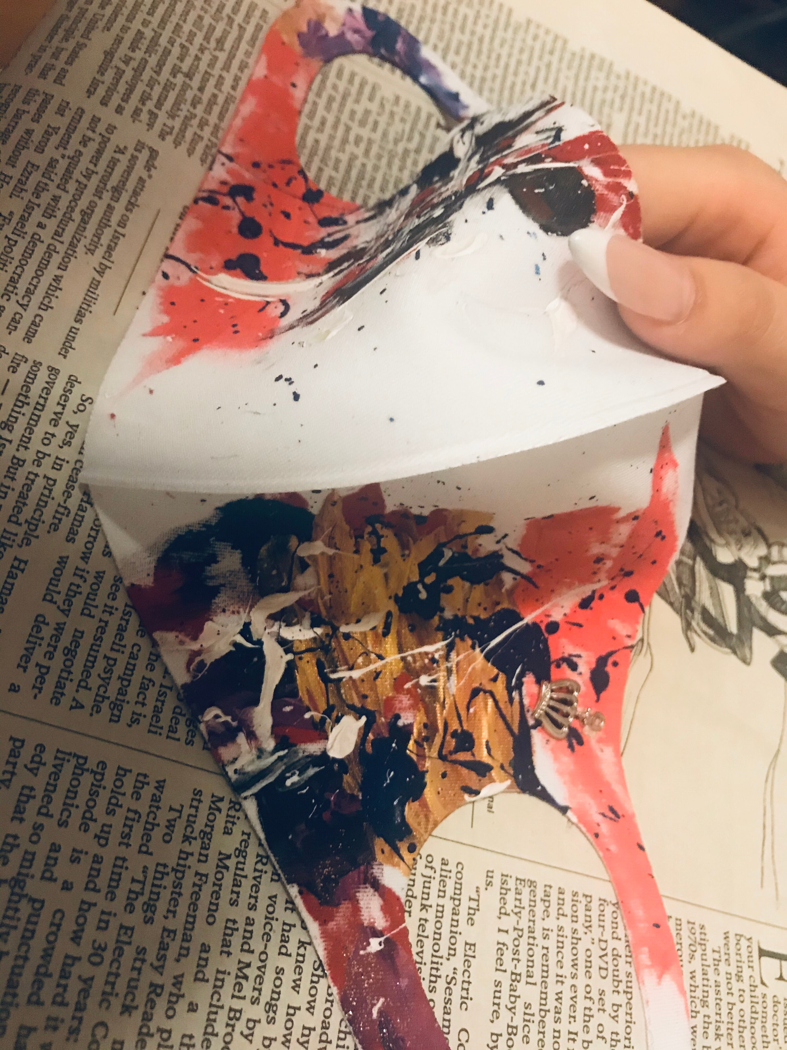 自分自身がしたいマスクを探していたのですが、なかなか好みなものが見つからなかった為、マスクをキャンパスに見立て描いたものです。